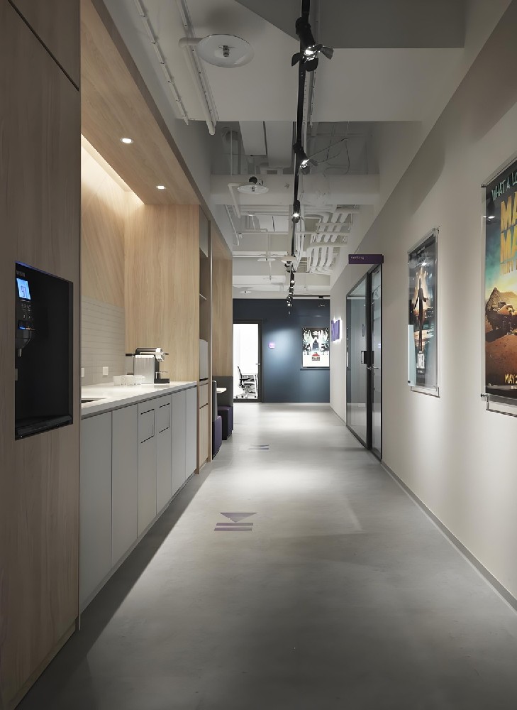 觀為監(jiān)測(cè)辦公室設(shè)計(jì)通過(guò)簡(jiǎn)約的線(xiàn)條和色彩搭配,運(yùn)用抽象圖案和鮮艷色彩,以紫色和白...... 項(xiàng)目面積:1100㎡ 施工工期:45天