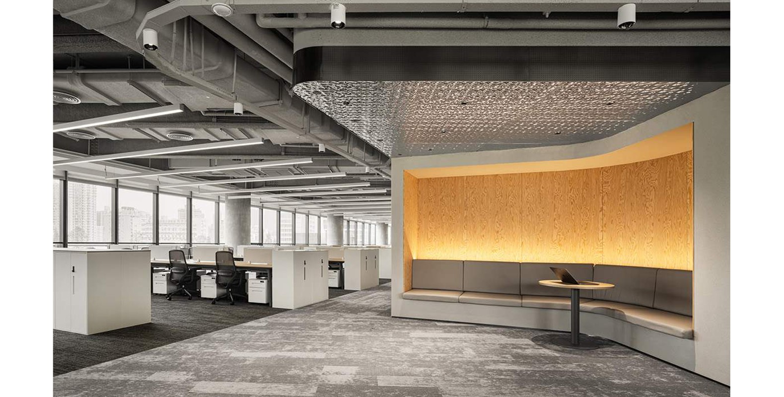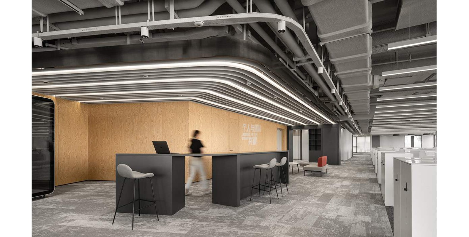 龍應(yīng)科技辦公室設(shè)計裝修采用簡約風(fēng)格設(shè)計,注重空間感和光線的運(yùn)用,以白色為主調(diào),搭配木質(zhì)元素,營造溫馨舒適的辦公環(huán)境,簡約而不簡單,既實(shí)用又美觀。