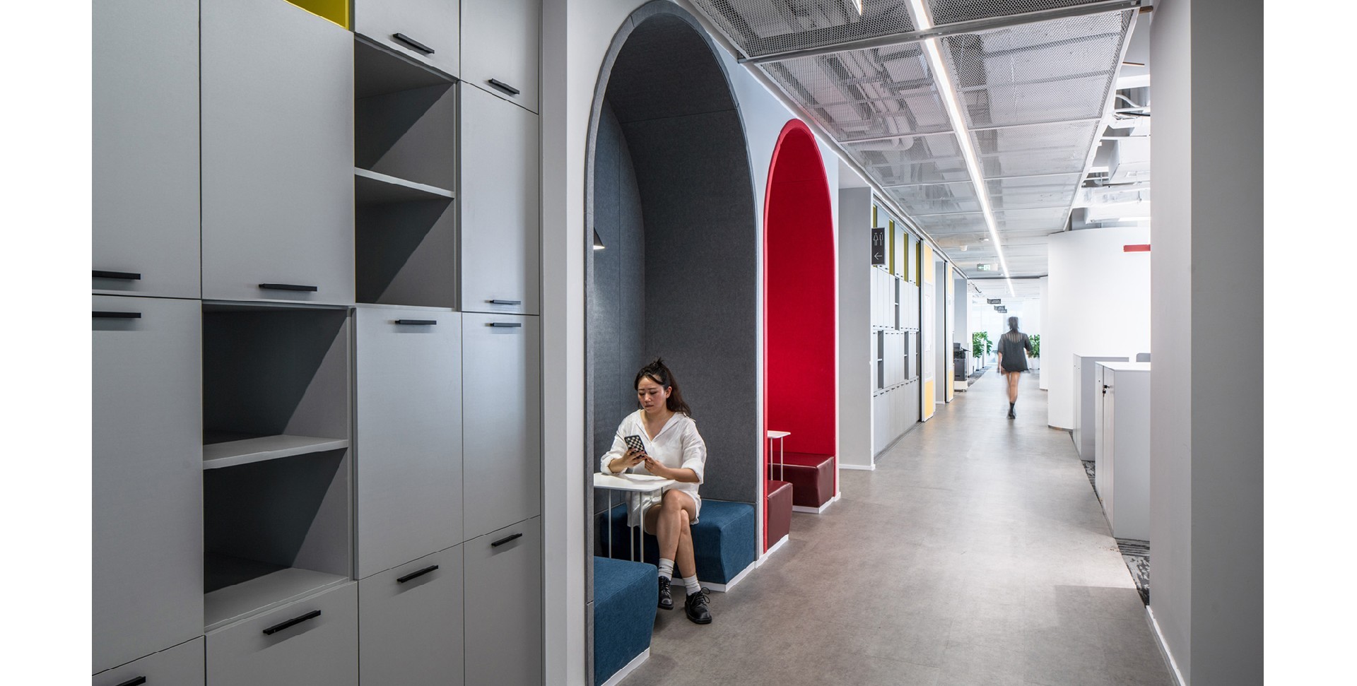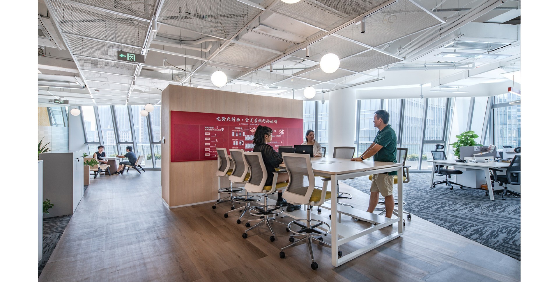 The design combines modern technological elements with natural plants to create a modern and warm environment. By designing multifunctional office spaces, different work needs can be met...