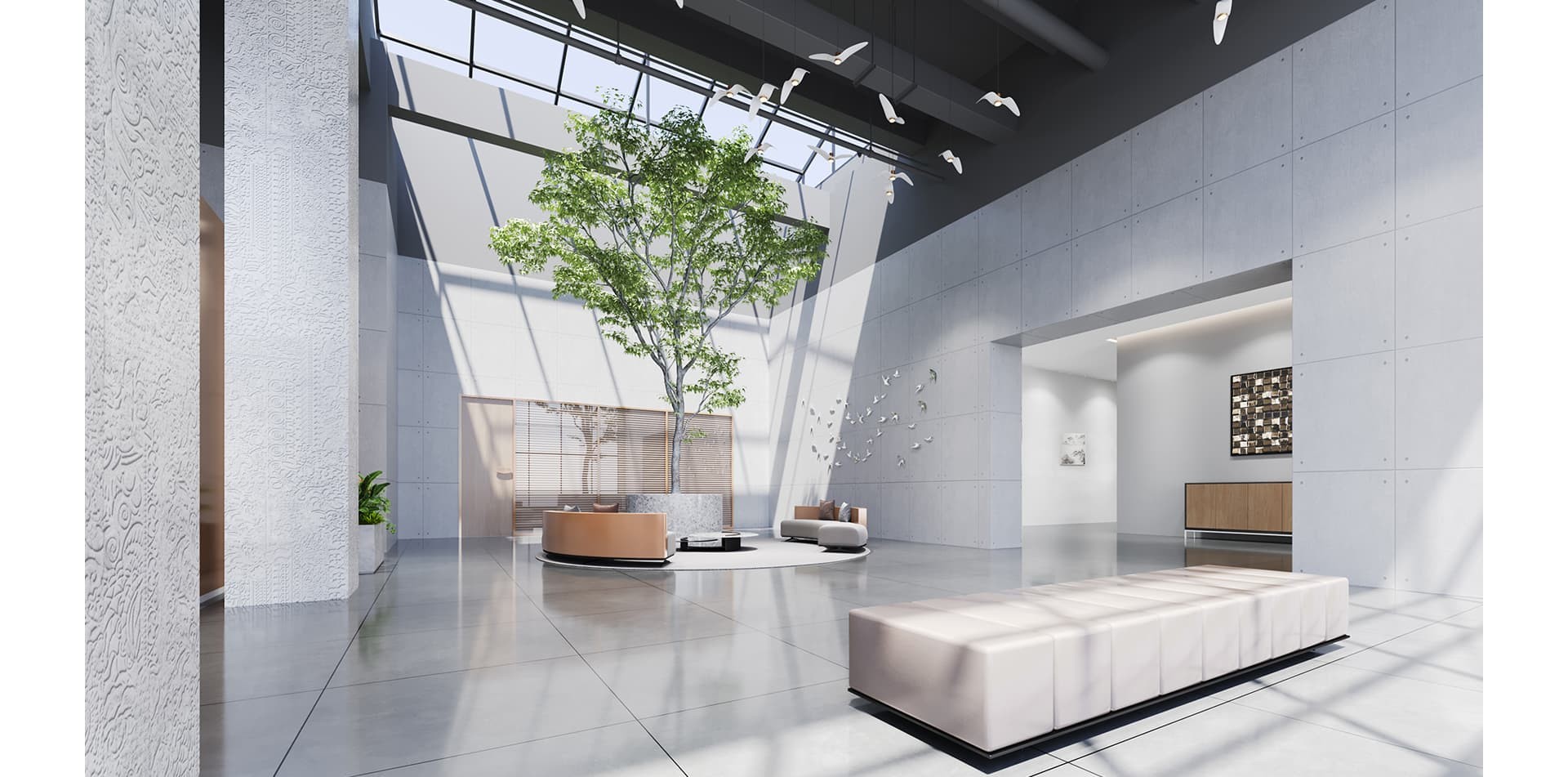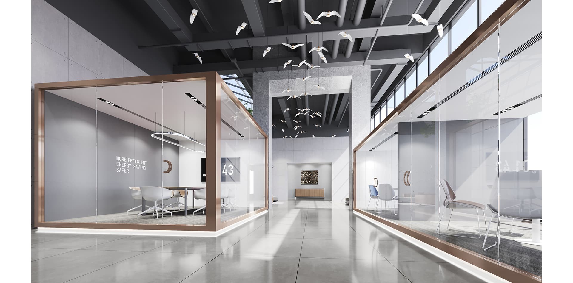 跨度鋼業(yè)辦公室裝修設(shè)計(jì)以?鋼結(jié)構(gòu)?為視覺核心,搭配?玻璃隔斷?與?木質(zhì)元素?,營造?通透大氣?的辦公氛圍,兼具工業(yè)風(fēng)粗獷質(zhì)感與現(xiàn)代辦公的開放協(xié)作屬性。