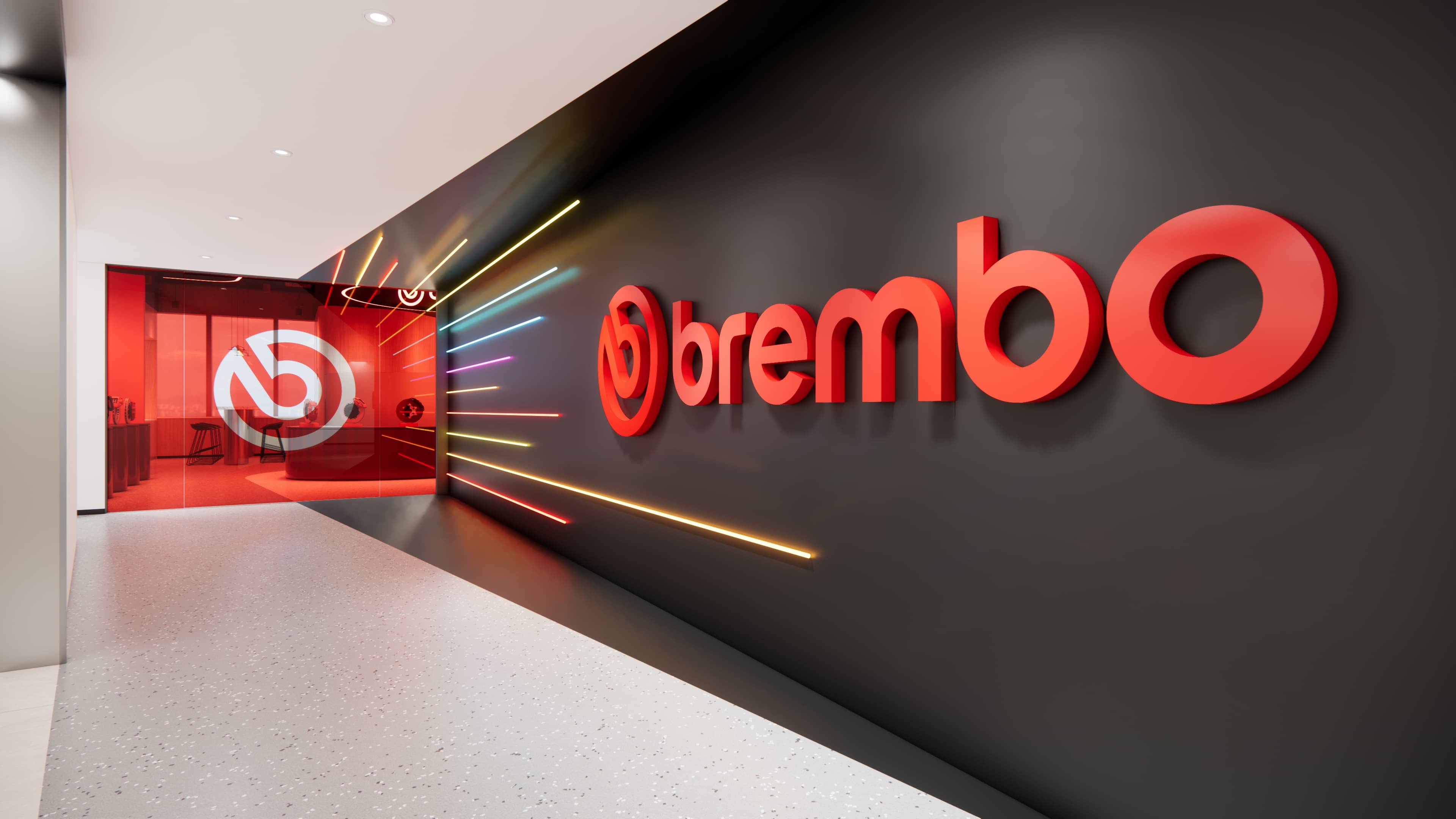 The decoration of Brembo's office highlights elements of industrial style, with the corporate red and white logo colors as the main tone, incorporating some green elements to make the corporate...